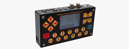 The Ambient Audio ACC-501 is a highly accurate portable master clock and time code generator/reader; it can jam, read, identify and compare all time codes. This device supports many frame rates and frame rates can be changed to match equipment to one another using jam-syncing. This model features Accuracy Check and Crystal Tuning GPS time.