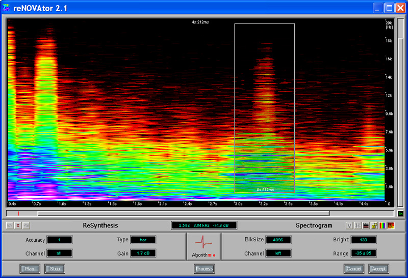 • Excellent sonic results compared to any other cleaning method, due to selective treatment of spectral representation of the signal and not its waveform