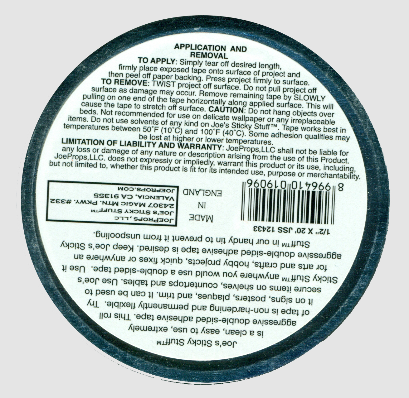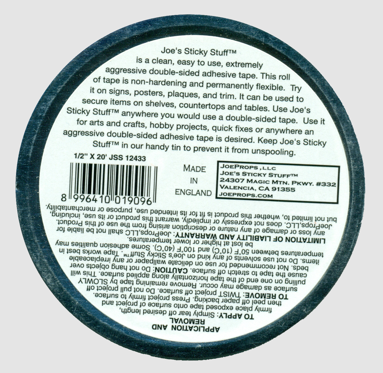 The Joe's Sticky Stuff 1/2" Clear Double-Sided Adhesive Tape is made of an aggressive, pressure-sensitive adhesive. Each roll measures at 1/2" wide by 20' long. In the past, people have used foam tape, blue tack and an automotive window ribbon called butyl. Invented and perfected behind-the-scenes in Hollywood, it was originally used to secure props in place without leaving behind any sticky residue and without damaging the item or the surface to which it was affixed. Filmtools stocks a variety of many different adhesive tapes.