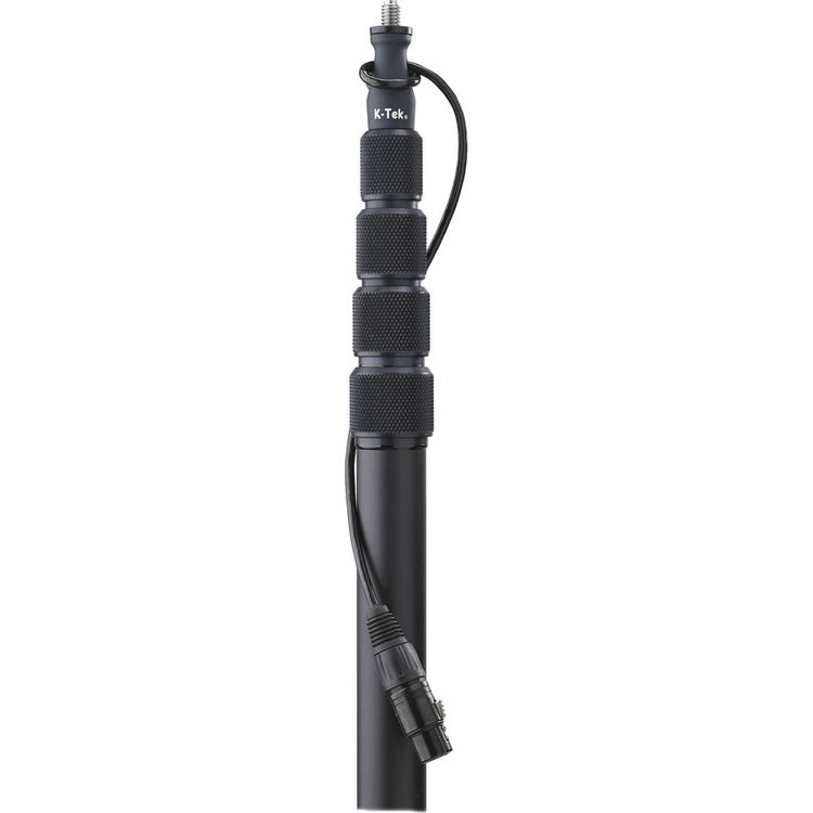 The KE144CC Avalon Aluminum Boom Pole has a collapsed length of 3’3″ / 99cm and an extended length of 12’0″ / 366cm and only weighs 1.900lbs / 862g. This 5-section Aluminum Boompole features an Internal Coiled Cable. The top attachment is a 3/8″ – 16 male thread and the bottom attachment is a Male 3-pin XLR – Straight Exit.
