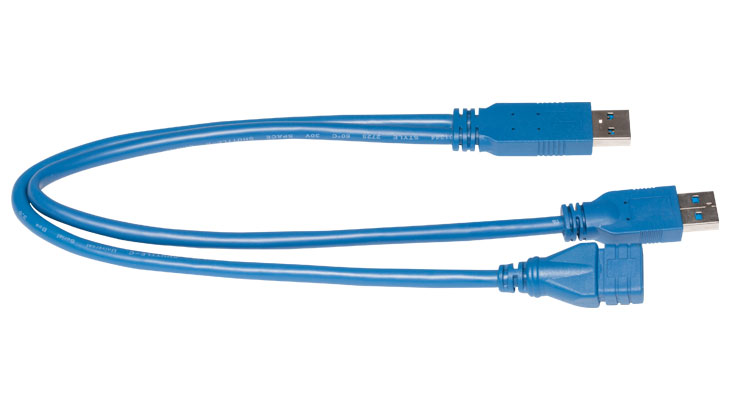 USB Y cable adapter, USB 3 Type A jack - two USB 2 Type A plugs. Connects a SpeedDrive to a computer with only USB 2.0 ports.
