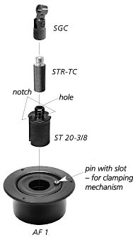 (ST 20-3/8) with 20 mm outer diameter and a stud with 3/8" threading is available. It has a hole drilled in the center of its top which could be used to pass a miniature cable through. To avoid the need for unsoldering and resoldering the cable connector, however, two notches are also provided on the sides of the adapter.