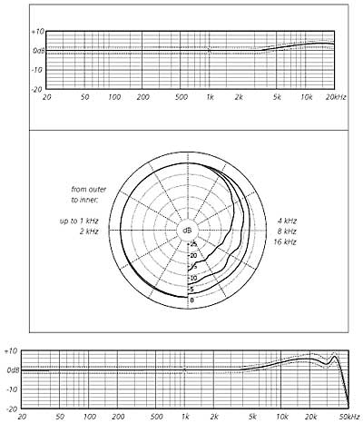 The MK 2S exhibits a slight high-frequency emphasis for frontal sound incidence, with only a slight rolloff of high frequencies off axis and in the reverberant sound field.