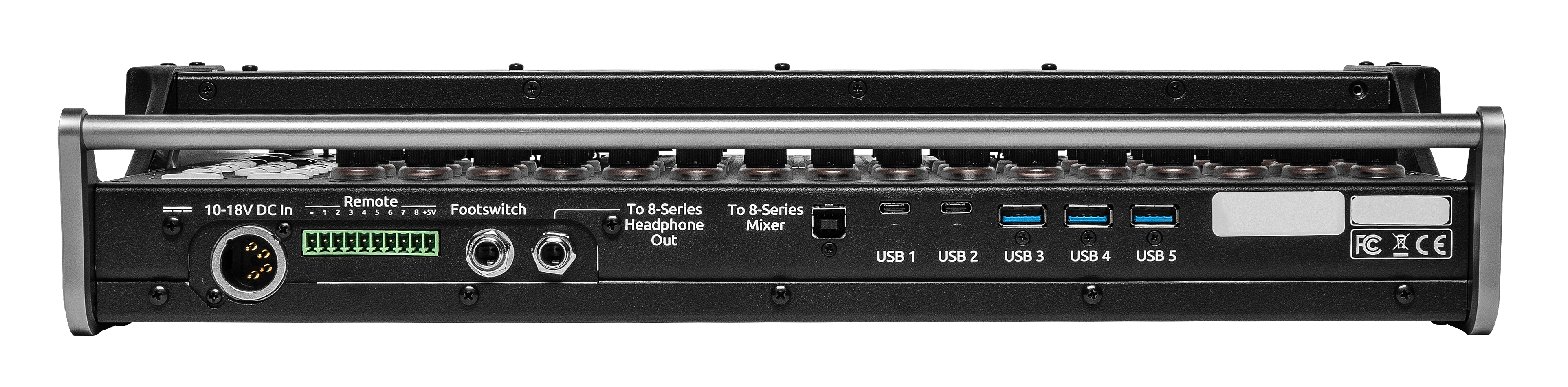 • 32 multi-function rotary controls for EQ, pan, channels 17-32 gains, bus gains, output gains, and more