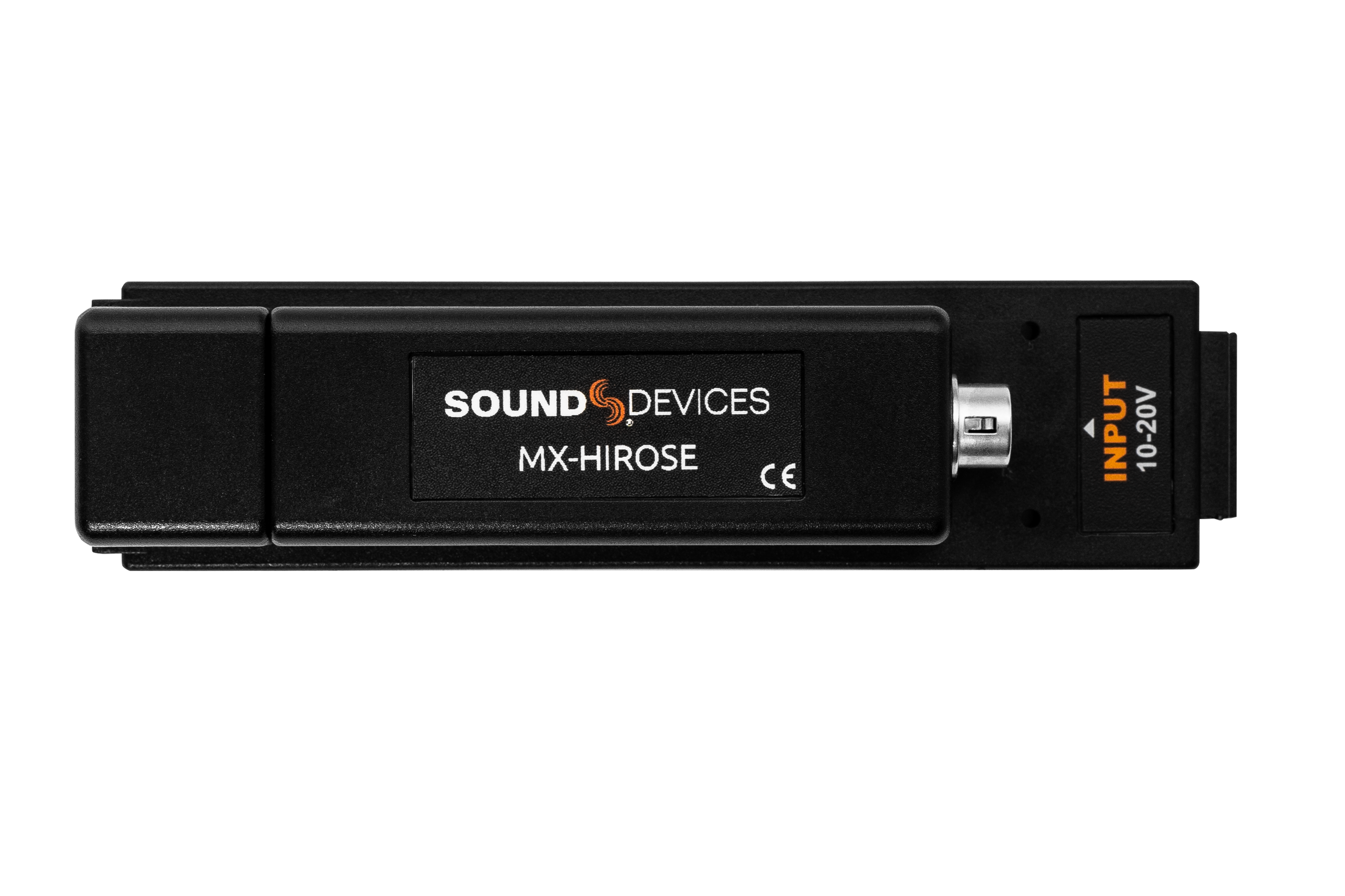 To remove the MX-HIROSE from the MixPre, press in the release tab. On the MixPre-10 II, it is necessary to use a flat blade screwdriver or similar tool. Sound Devices recommends plugging in a right angled Hirose connection, such as this,  before attaching the MX-HIROSE to the MixPre. Set MixPre Menu>Power>Battery Type to NiMH.