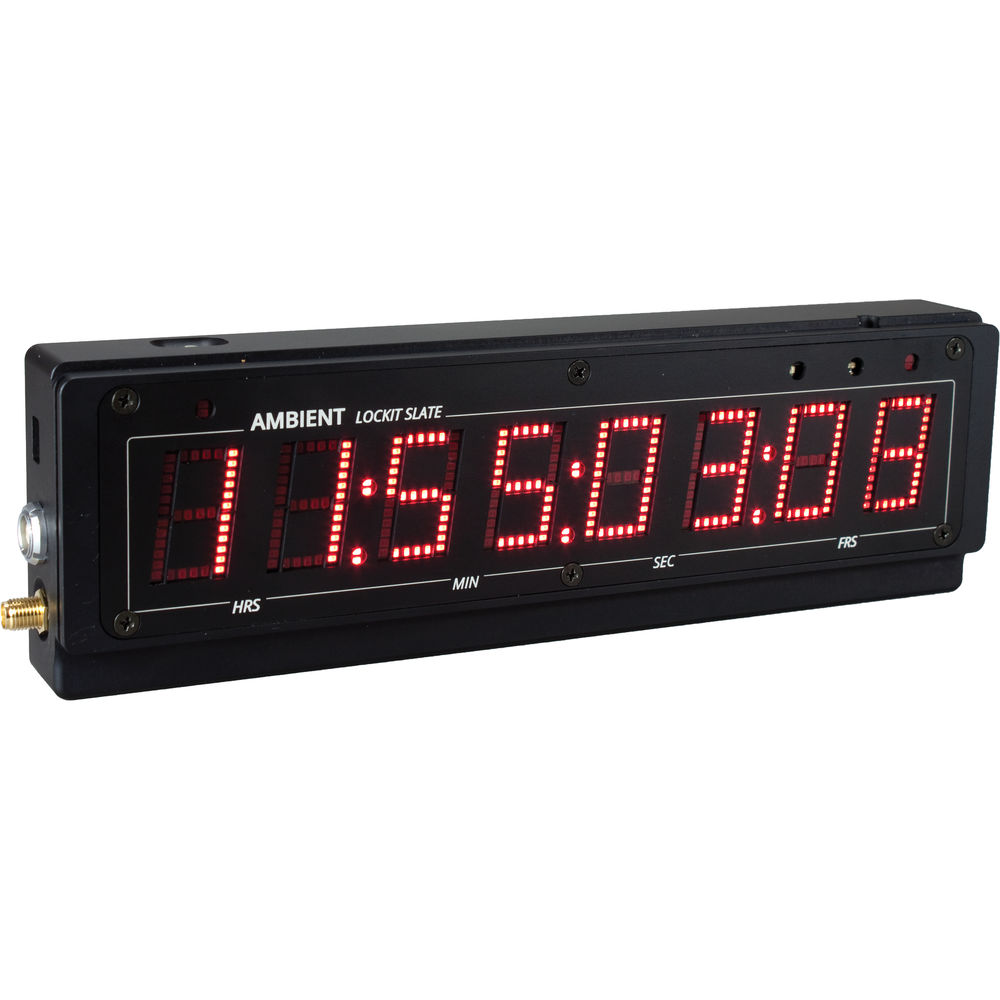The Lockit Timecode LED Display from Ambient Recording is the electronic display section of the Lockit Slate and also serves as a fully functional, compact, standalone display for documentary or desktop use. The display is housed in a machined, pearl-blasted, and anodized aluminum body enabling it to withstand rough production conditions.