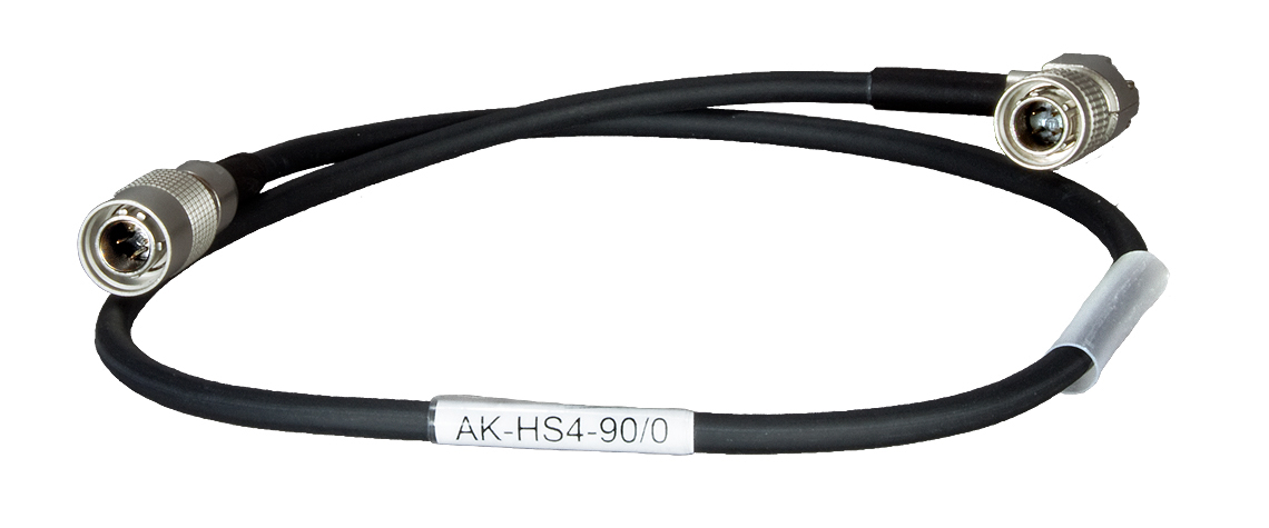 The 1.64' AK-HS4-90/0 4-Pin Hirose to 4-Pin Hirose Cable from Ambient Recording is used for supplying power and features a 4-pin Hirose connector on one end and a 4-pin Hirose right-angle connector on the other end.