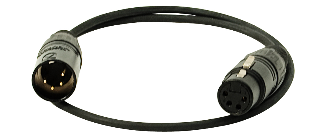 The 1.64' AK-XLR4 4-Pin XLR Male to 4-Pin XLR Female Power Supply Cable from Ambient Recording features a 4-pin XLR male connector at one end and a 4-pin XLR female connector at the other.