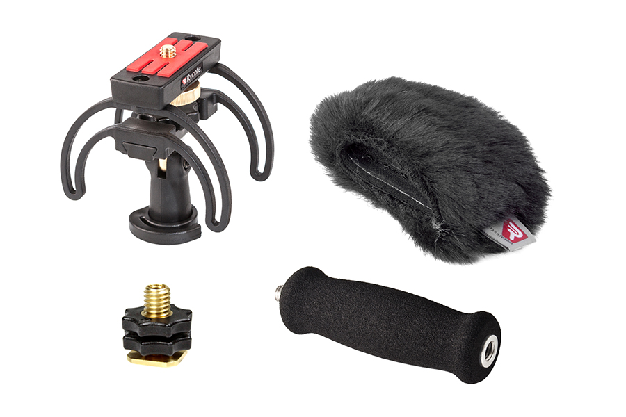 A combined Windshield and Suspension solution, the kit contains everything needed to protect a handheld digital recorder from outdoor wind noise, and also to isolate it from unwanted vibrations, whether from handling or stand-borne noise. It is aimed at journalists, film-makers, or anyone using a handheld digital recorder to make professional-quality audio recordings outdoors. It can be used location soundtracks or outside broadcast, or for simple audio podcasts or outdoor radio reporting.