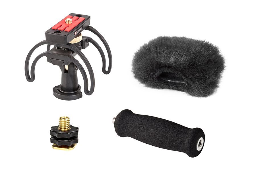 A combined Windshield and Suspension solution, the kit contains everything needed to protect a handheld digital recorder from outdoor wind noise, and also to isolate it from unwanted vibrations, whether from handling or stand-borne noise. It is aimed at journalists, film-makers, or anyone using a handheld digital recorder to make professional-quality audio recordings outdoors. It can be used location soundtracks or outside broadcast, or for simple audio podcasts or outdoor radio reporting.
