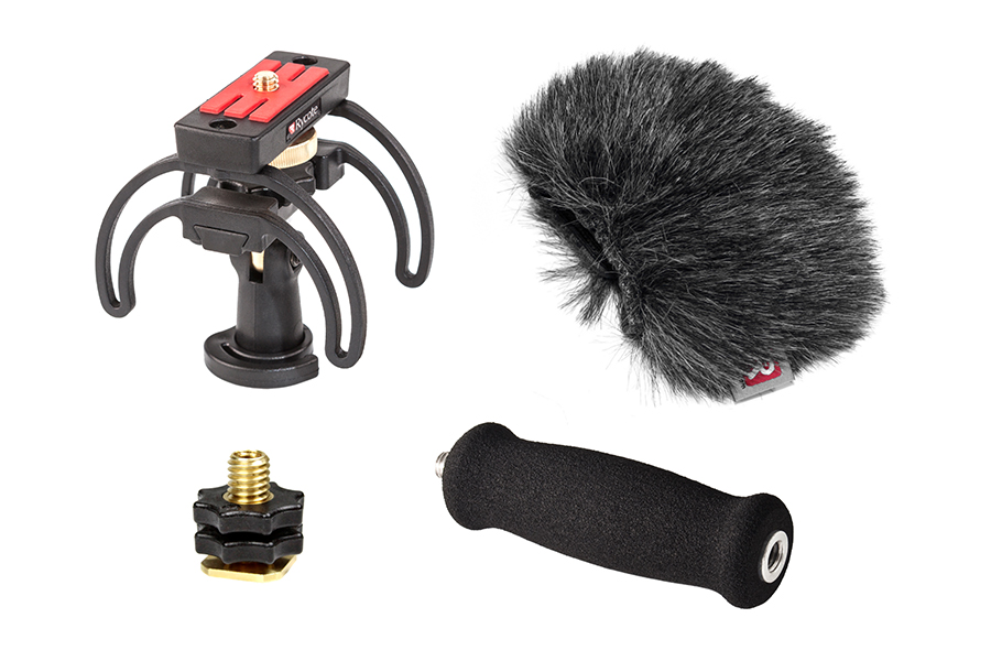 A combined Windshield and Suspension solution, the kit contains everything needed to protect a handheld digital recorder from outdoor wind noise, and also to isolate it from unwanted vibrations, whether from handling or stand-borne noise. It is aimed at journalists, film-makers, or anyone using a handheld digital recorder to make professional-quality audio recordings outdoors. It can be used location soundtracks or outside broadcast, or for simple audio podcasts or outdoor radio reporting.