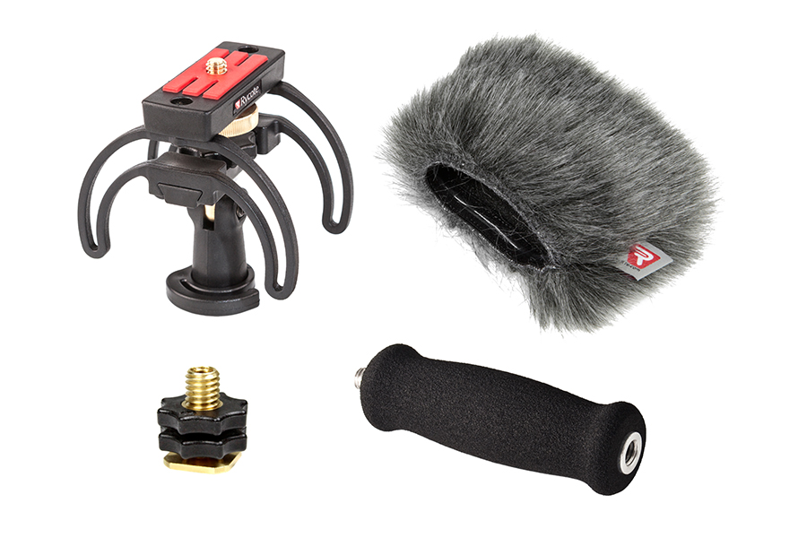 A combined Windshield and Suspension solution, the kit contains everything needed to protect a handheld digital recorder from outdoor wind noise, and also to isolate it from unwanted vibrations, whether from handling or stand-borne noise. It is aimed at journalists, film-makers, or anyone using a handheld digital recorder to make professional-quality audio recordings outdoors. It can be used location soundtracks or outside broadcast, or for simple audio podcasts or outdoor radio reporting.