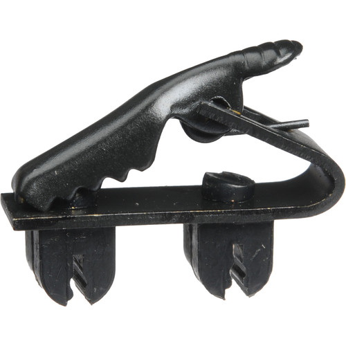 The double tie clip can hold two B6 lavaliers for applications where low-profile redundancy is important.