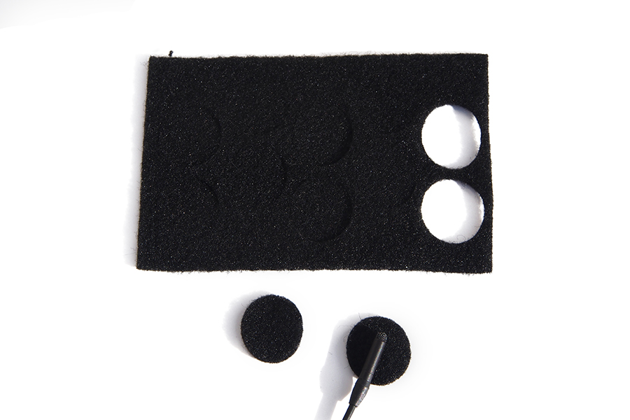 Using Stickies to affix the microphone, a soft fabric disc is then added on top to minimise the sounds of clothing rustle and low wind noise.