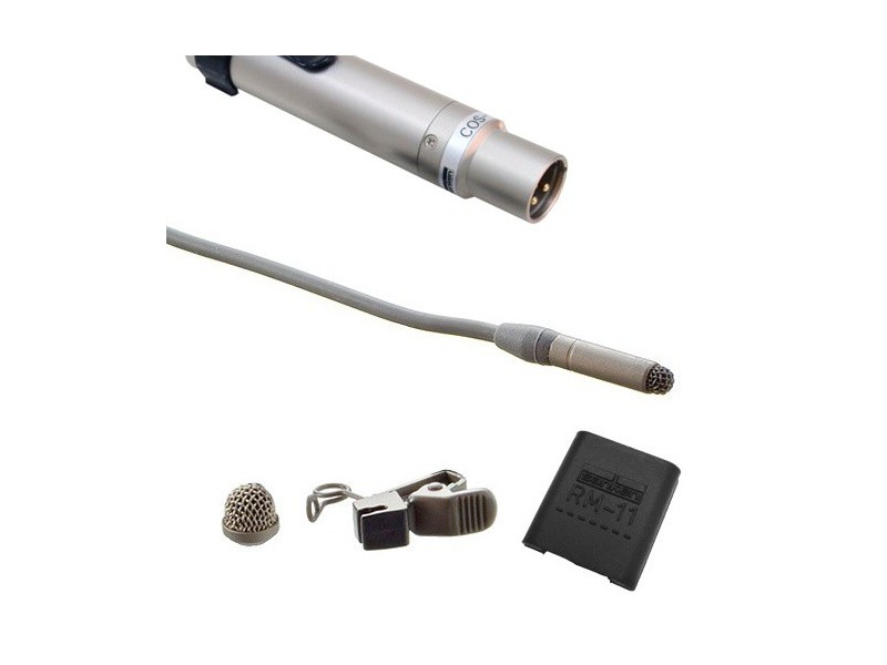 Lavalier Microphone operated by both AA battery and P12V~52V, XLR-3M output, sensitivity 2.1mV, 3m cable, with accessories.