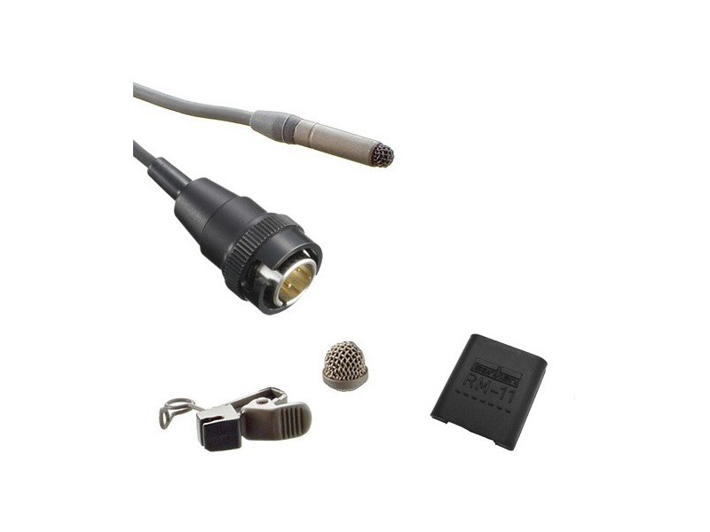 An improved water-resistant mesh screen protects against humidity, perspiration, makeup, bad weather, etc. The miniature profile of the lavalier makes it an ideal solution for professional theater, video recording, film and broadcast applications.