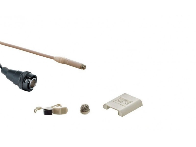 An improved water-resistant mesh screen protects against humidity, perspiration, makeup, bad weather, etc. The miniature profile of the lavalier makes it an ideal solution for professional theater, video recording, film and broadcast applications.