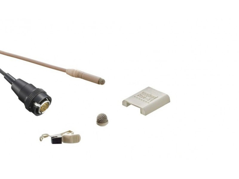 An improved water-resistant mesh screen protects against humidity, perspiration, makeup, bad weather, etc. The miniature profile of the lavalier makes it an ideal solution for professional theater, video recording, film and broadcast applications.