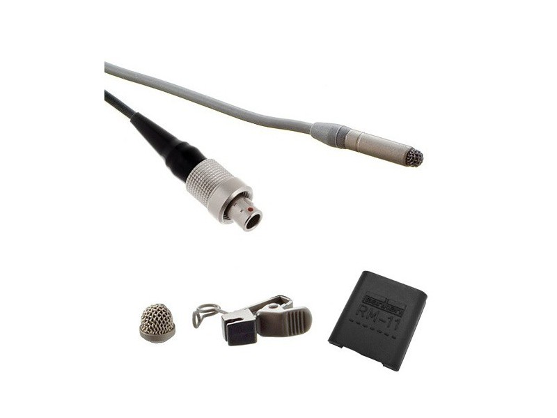 Lavalier Microphone with Lemo 3pin connector for wireless transmitter, 9dB attenuated sensitivity, 1.8m cable, with accessories.