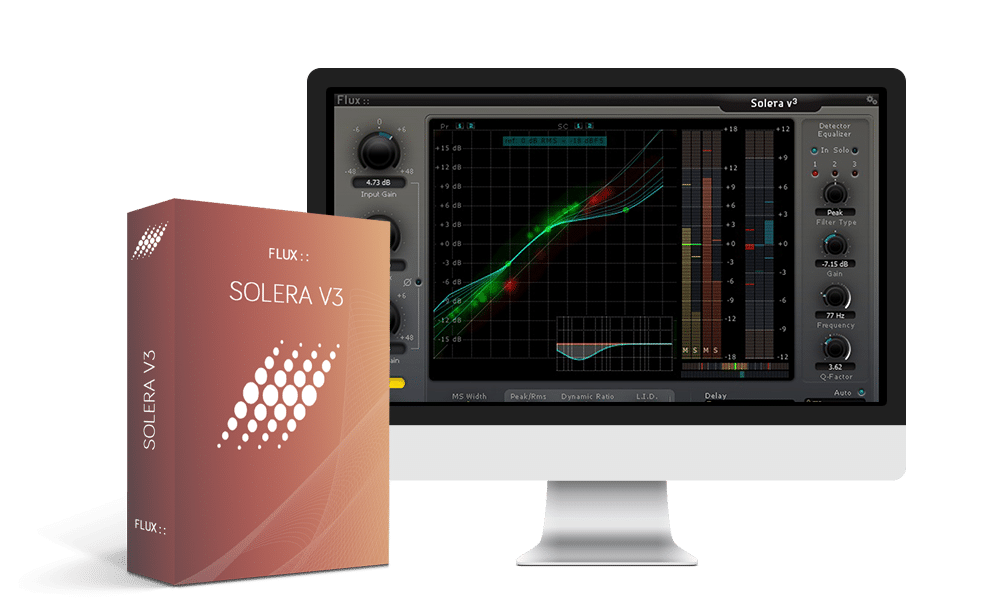 The Merging Technologies Flux Solera V3 Mastering the Art of Dynamics processor combines the power of a compressor, expander, de-compressor and de-expander, all four available direct through the user interface, processing in parallel. To provide the best means for the analysis of the material, a side chain section featuring a three-band equalizer to generate frequency sensitive processing, as well as input options for an external side-chain signal, is provided. In order to further enhance the workflow, three release modes are presented; manual, auto and advanced (with minimum and maximum release values fully adjustable), as well as an auto delay function allowing for zero attack times by introducing a delay line in the processed signal.