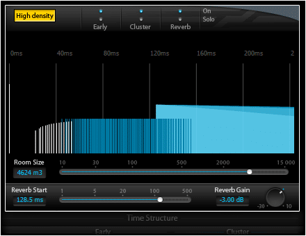 • Graphical representation of Early, Cluster and Reverb. Room Size.