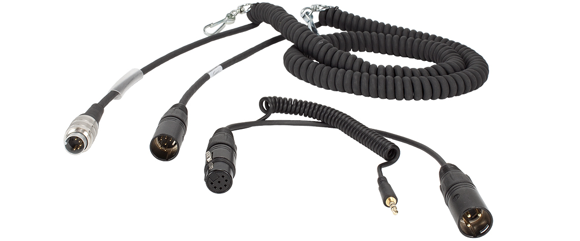 The 4.5 to 16.4' HBS-SQN3Y7-35M Coiled Breakaway Cable for SQN3 from Ambient Recording comes with a Tuchel 5-pin male to 3-pin XLR male connector and return via TRS mini plug on coiled cord for SQN3. It comes with a HBY7-35 Y-breakout cable.
