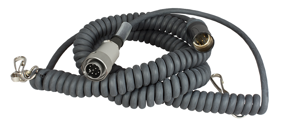 The 4.6 to 16.4’ HBS10-7 Hirose 10-Pin Male to 7-Pin XLR Male Coiled Breakaway Cable from Ambient Recording is used with Sound Devices 442 / 442N, 552, SQN4 (old designs), Cooper CS104, and TW Electronic LP44 / LP4 32 Mixers.
