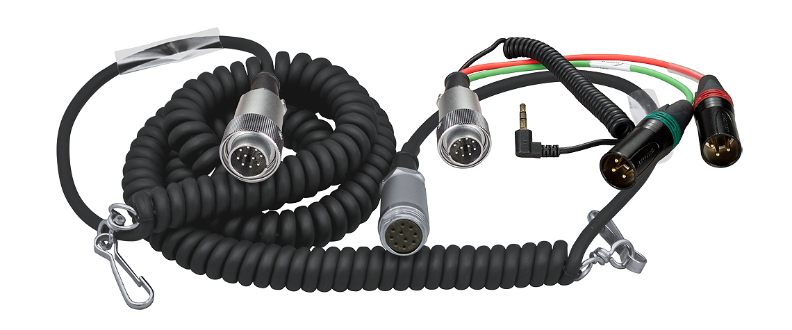 The 4.6 to 16.4’ HBS10Y10-35W Hirose 10-Pin Male to Hirose 10-Pin Female Coiled Breakaway Cable from Ambient Recording comes with a Y cable and is used with Sound Devices 442 / 442N, 552, SQN4 (old designs), Cooper CS104, and TW Electronic LP44 / LP4 32 Mixers. The signal returns via a TRS mini right angle plug on the coiled cord.