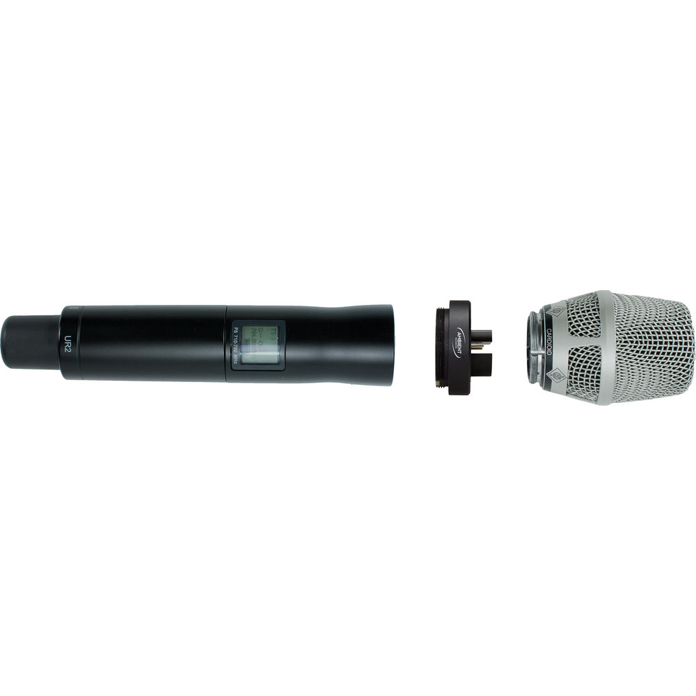 Made out of solid aluminum, this unobtrusive device lets you match your favorite microphone sound with your favorite wireless handheld. The adaptor allows to mount heads for the Sennheiser SKM 5000 series such as the highly acclaimed Neumann KK 104 and 105 to any transmitter that uses the widely spread Shure mount.