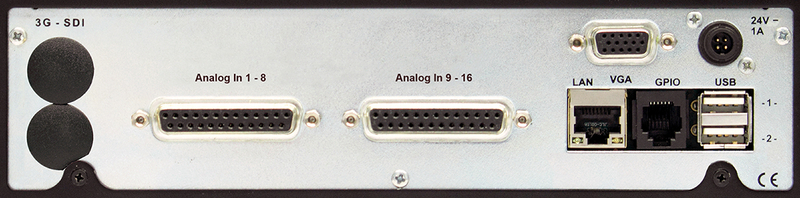16-ch analog input (2 x Sub-D),Ethernet, VGA, 2 x USB 2.0, GPIO, 24 V DC connectors.