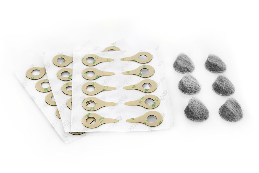 A Mikro-szélvédők egy csomagban 30db öntapadó ragasztót és 6db szürke szőrös lapocskát tartalmaznak.