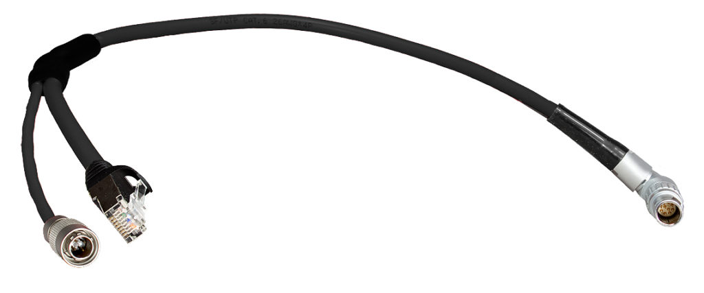 RJ45 to 10-pin right angle Push-Pull connector, 0.5 m, with breakout to Hirose 4-pin for powering