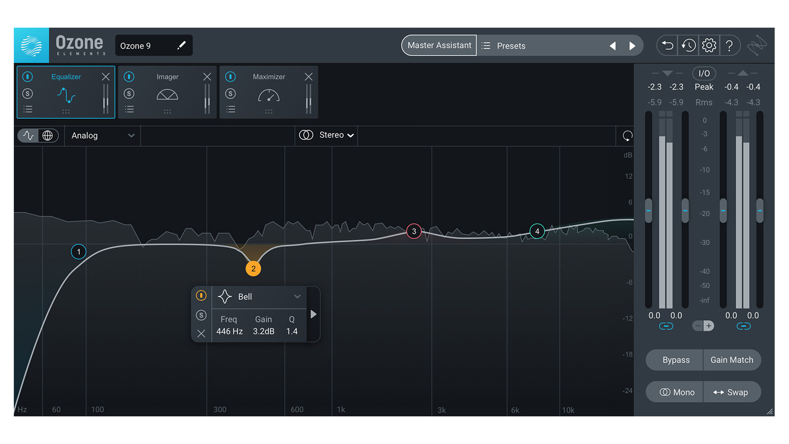 • Ozone's famed Equalizer, with M/S and Analog modes