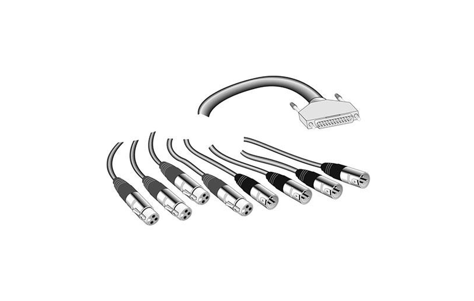 Snake cable, 4 m, distributes 25p-Sub-D to 4 x XLR-M and 4 x XLR - F, for AES3 In/Out connectors.