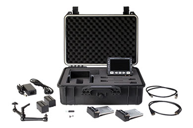 (1) PIX-HC1A Case, (1) PIX 240i Recorder, 2) PIX-CADDY2 mounts, (2) PIX-SSD6  240GB 2.5" SSD Drives, (1) PIX-HOOD, (2) XL-B2 7.2V Li-Ion L-Series Battery,(1) PIX-ARM, (1) XL-WPH3 power supply, (1) HDMI Cable (3 ft), (1) SDI Cable (3 ft), (1) 1/4-20 Simple Stand. Case Dimensions: 17" x 11.5" x 6" inches.