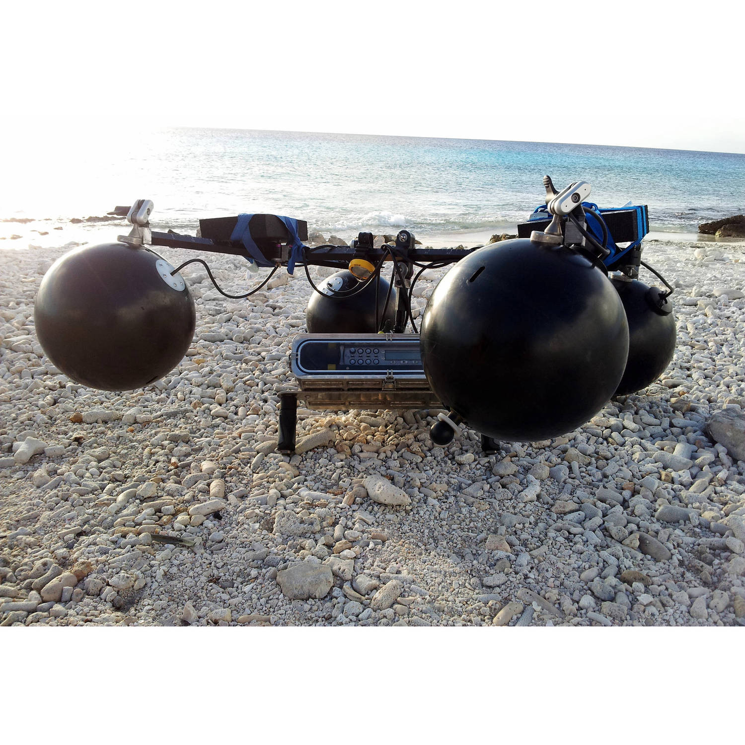 The RS-5 Underwater Surround Rig from Ambient Recording is a rig made to record underwater in surround which consists of two RS2 Underwater Stereobars jointed with one center bar. The bar is made out of anodized aluminum and finished with universal joints glued in under high pressure. The reinforced POM clamps can hold up to six flooded DS30 Spheres.