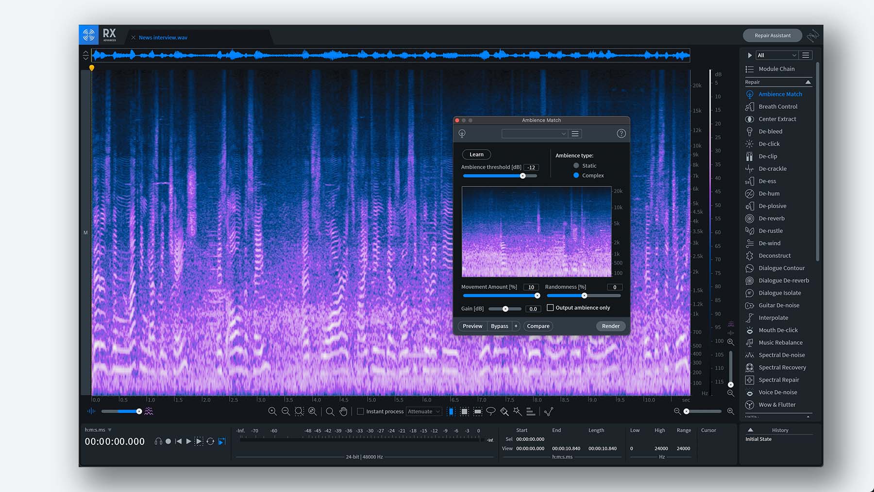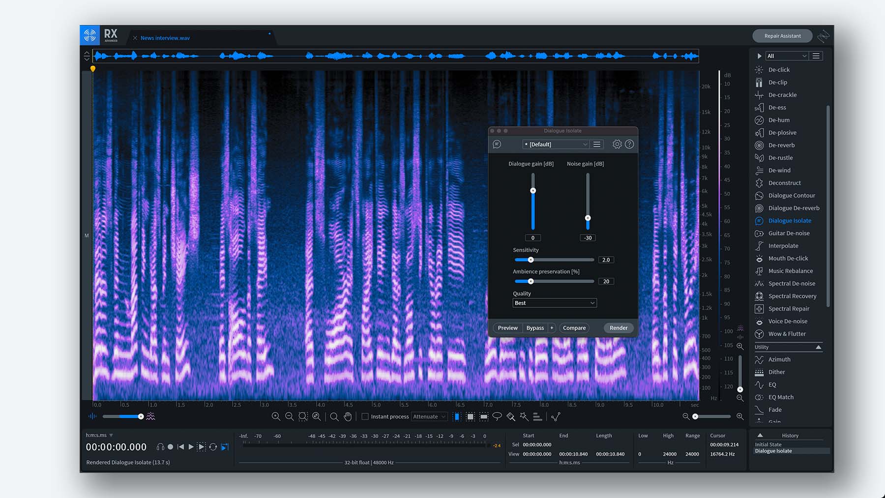 Designed specifically for the demanding needs of post production professionals, RX 9 Advanced continues to be the industry standard audio repair tool used on movies and TV shows to restore damaged, noisy audio to pristine condition.