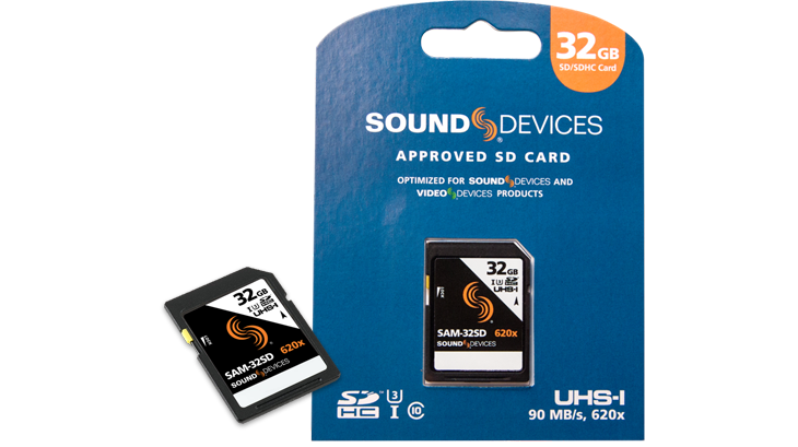 32GB approved SD/SDHC card for use with Sound Devices and Video Devices products. It is rated at 90 MB/s for read & write speeds (620x).