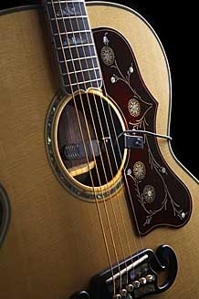 The GA 1 clamps onto the sound hole of a guitar and is tightened by turning a coin in the outward-facing slot (see photo). With this mounting device the microphone or capsule is positioned within the instrument, where the maximum sound level can be obtained without risk of feedback. For this application it is necessary to use a capsule or microphone with reduced low-frequency response, such as the MK 4VXS / CCM 4VXS or MK 4A / CCM 4A.
