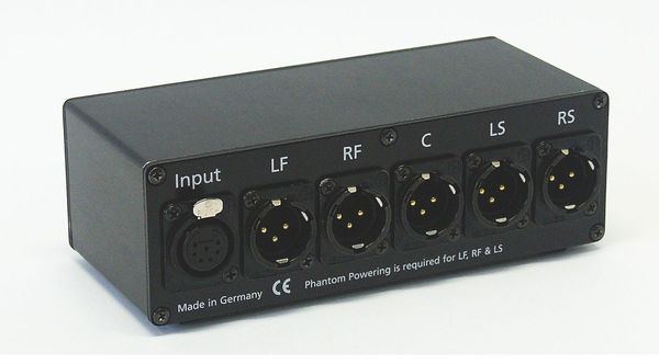 It is a small, sturdy box with high-quality transformers forming a passive decoder matrix. Microphone signals are converted directly into 5.0 L / R / C / LS / RS surround signals. A second, switchable mode supplies four signals with no center-channel output.