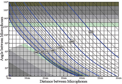 One possible arrangement, for example, would be a distance of 21 cm with a 110° angle between the microphones.