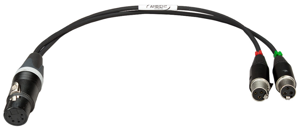 Stereo cable adaptor with Neutrik 5-pol XLR female to dual 3-pin to XLR female