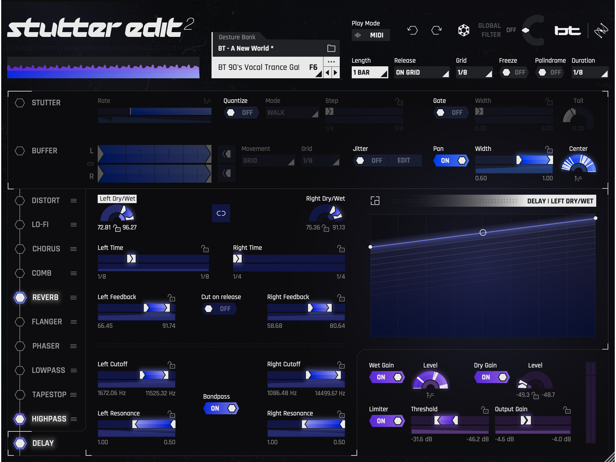From the mind of BT, Stutter Edit 2 lets you create the famous “stutter” editing effect with one button to slice and dice your samples, tracks, and mixes. Dissect your audio and get a bottomless well of inspiration in a single plug-in.