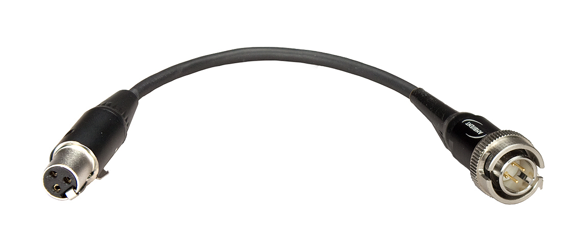 The 6.3" UMP-Out/4H Audio Output Cable from Ambient Recording is used for connecting a (UMP) Universal Microphone Power supply to a Sony DWx transmitter. This cable features a TA3F connector on one end and a Sony SMC9-4P Series connector on the other end.