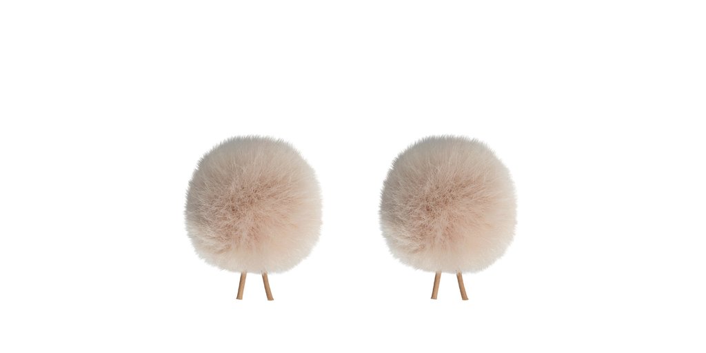 The Twin Windbubbles from Bubblebee Industries is a set of two miniature imitation-fur windscreens that easily fit on lavalier microphones with a diameter of 0.12 to 0.16" (3 to 4mm). The tiny elastic-wire legs make it easy to mount them on the microphones. They can be used to reduce wind noise and vocal plosives in outdoor environments, and are designed to not fall off during use. Examples of compatible microphone models for this windscreen include the Sanken COS-11 (without metal windscreen), Countryman B6, E6 and Sennheiser MKE1.