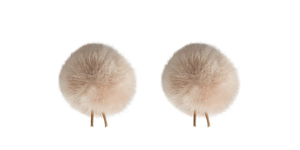 The Twin Windbubbles from Bubblebee Industries is a set of two miniature imitation-fur windscreens that easily fit on lavalier microphones with a diam