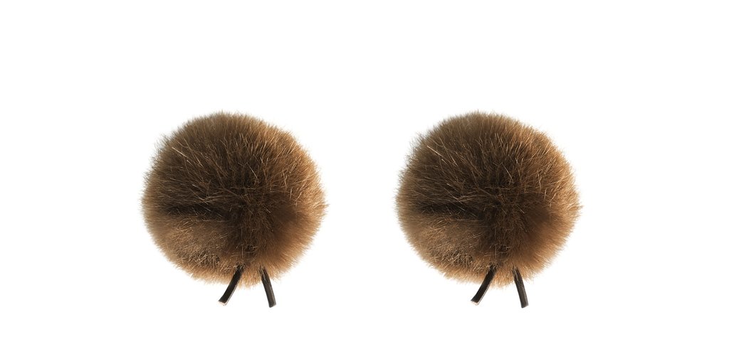 The Twin Windbubbles from Bubblebee Industries is a set of two miniature imitation-fur windscreens that easily fit on lavalier microphones with a diam