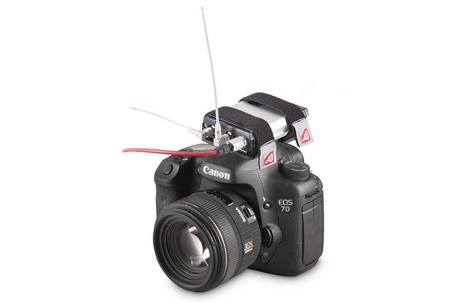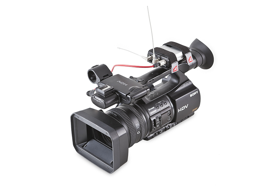 Suitable for most portable wireless receivers. May be mounted onto a camera's 1/4" mounting point, or onto its hot shoe.