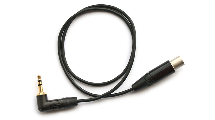 3.5 mm to TA3-F audio cable. Same as XL-3, but with a right-angle 3.5 mm connector. Use with MixPre-D.