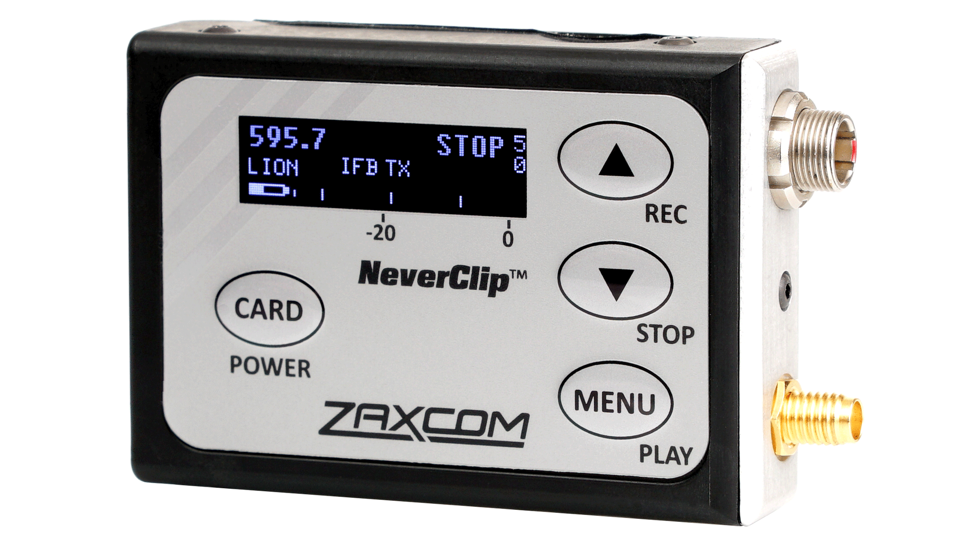 The ZMT3 works with ZaxNet, Zaxcom’s 2.4-GHz RF network that distributes remote control commands, timecode and IFB audio. With ZaxNet, one can remotely control transmitter settings such as gain, frequency channel selection, transport controls and output power levels. The ZMT3 also sends a Quality Control audio signal over ZaxNet so when micing someone you don’t have to go to the cart to hear how it sounds, you can use an ERX to listen to the mic right on the spot.